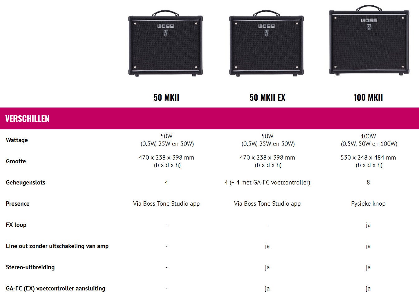 Ga je toch voor een 50 watt Katana? Dan is het goed om te weten dat het Japanse bedrijf recent ook op de proppen kwam met een Katana-50 MKII EX. Deze kreeg alle functies van de standaard Katana-50 MKII, plus een paar extra features van de 100W versie.