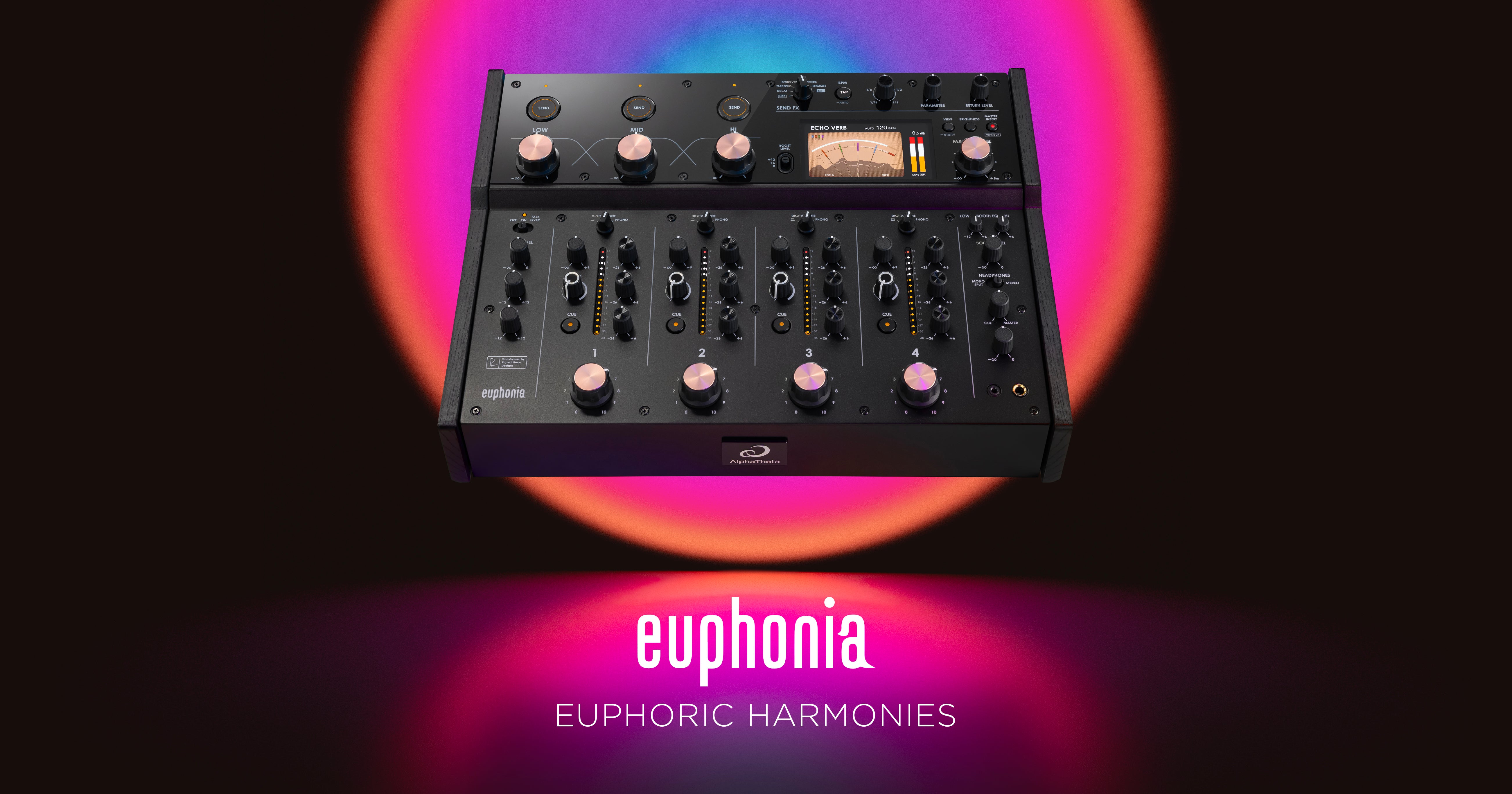 AlphaTheta a dévoilé aujourd'hui sa première table de mixage pour DJ sous la marque AlphaTheta, et quelle table de mixage ! Il s'agit d'une véritable table de mixage rotative équipée de transformateurs Rupert Neve Designs, baptisée Euphonia.