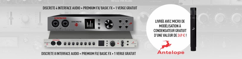 Le célèbre fabricant de matériel audio américain Antelope Audio propose une offre à ne pas rater ! En effet, pour l'achat d'une interface audio Discrete 4 Premium FX, 8 Premium FX, Discrete 4 Basic FX ou Discrete Basic 8 FX, vous recevez temporairement un micro de modélisation Verge en cadeau. Si vous achetez une interface audio Discrete 8 Basic/Premium FX, vous en recevez même deux ! Notez que cette offre est valable jusqu'au 15 septembre 2018 inclus ! |