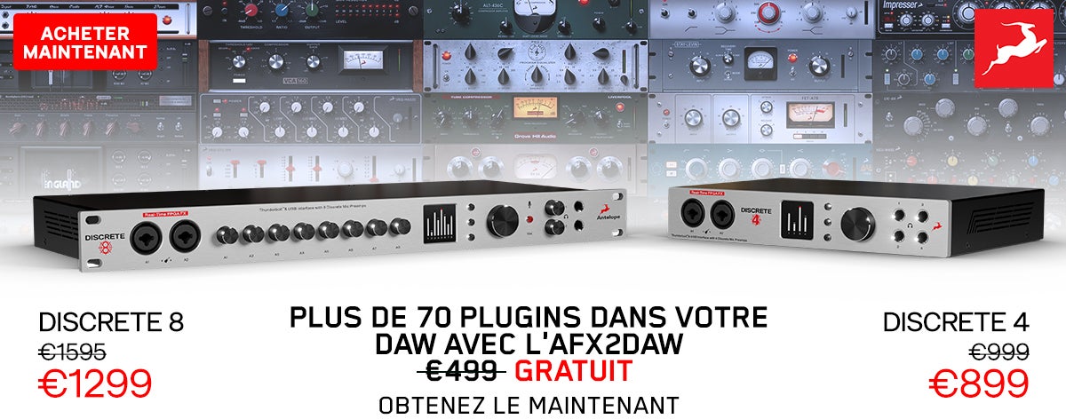 Bonne nouvelle pour tous les puristes de l'audio et les amateurs d'une qualité supérieure ! En ce moment, lorsque vous achetez une interface audio Antelope Audio Discrete 4 ou 8, vous bénéficiez gratuitement de la mise à niveau vers le pack Premium FX et du plug-in AFX2DAW. De plus, le prix de ces deux interfaces a été considérablement baissé durant cette période promotionnelle ! C'est donc le moment d'en profiter. Pour plus d'infos, lisez la suite...