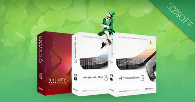 Pour célébrer la Saint-Patrick, nous proposons une réduction de 30% sur divers logiciels et mises à niveau de Presonus. L'offre est valable du 16 au 18 mars 2018 inclus.