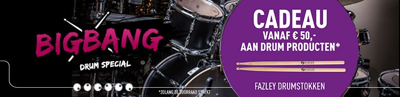 Bij besteding vanaf € 50,- aan drum-producten ontvang je Fazley drumstokken cadeau!