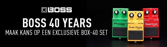 Bijna iedere gitarist of basgitarist heeft wel een stompbox van Boss in zijn bezit of op zijn pedalboard staan. De populaire compacte pedalen van deze vermaarde Japanse effectengigant bestaan dit jaar alweer 40 jaar en dat moet vanzelfsprekend gevierd worden. Daarom is dit jaar onder andere al een beperkte oplage van 1500 stuks van de BOX-40 Compact Pedal 40th Anniversary Box Set uitgebracht. Boss heeft echter nog meer voor jullie in petto..