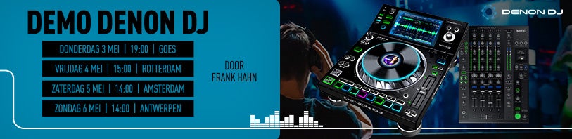 Change your riderMet die slogan veroorzaakte Denon DJ opschudding in de DJ-wereld. De SC5000 Prime met in zijn kielzog de X1800 Prime zou de ultieme nieuwe DJ-set worden. De tabletop bevatte alles wat je hartje begeerde: van een groot en supersnel touchscreen, aanraakgevoelig jogwheel tot acht samplepads aan toe. In combinatie met de mixer een dodelijke combinatie die menig gebruiker van andere gear in verlegenheid bracht. Om je de volle glorie van deze set - én de nieuwe VL12 draaitafel - te laten zien, zal Denon DJ-specialist Frank Hahn je alle snufjes ervan laten zien tijdens zijn demo. Bij zijn? Schrijf je dan hieronder in, de entree is gratis! Datum: donderdag 3 mei 2018 (koopavond) Datum: vrijdag 4 mei 2018 Datum: zaterdag 5 mei 2018 Datum: zondag 6 mei 2018 Schrijf je nu in!