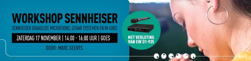 Zoek je een microfoon, ga je het podium op met je gitaar of wil je jezelf als muzikant goed kunnen horen? De kans wordt tegenwoordig steeds groter dat je kiest voor een draadloos systeem. Maar het aanbod is gigantisch, om nog maar niet te spreken over de talloze frequentiebanden. Om je daarbij te helpen, is er op zaterdagmidag 17 november 2018 een gratis demo bij Bax Music Goes over draadloze systemen. Deze informatieve workshop wordt gegeven door productspecialist Marc Geerts van Sennheiser. Heel praktisch voor iedereen die van plan is een draadloze microfoon, gitaar-set of in-ear-monitoring-set aan te schaffen. Schrijf je nu in! Onder alle aanwezigen zal een EW D1-935 worden verloot!