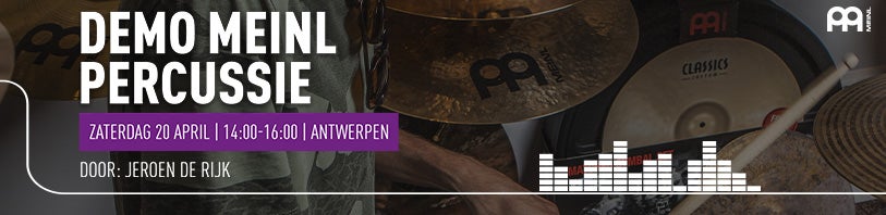 Op zaterdag 20 april is onze winkel in Antwerpen 'the place to be' voor drummers, percussionisten en slagwerkers. Meinl endorser Jeroen de Rijk zal tussen 14.00 en 16.00 een uitgebreide demo geven waarbij diverse Meinl instrumenten aan bod komen. Het belooft een leerzame en inspiratievolle middag te worden waarbij er natuurlijk ook gelegenheid is tot het stellen van vragen. Toegang is uiteraard gratis.