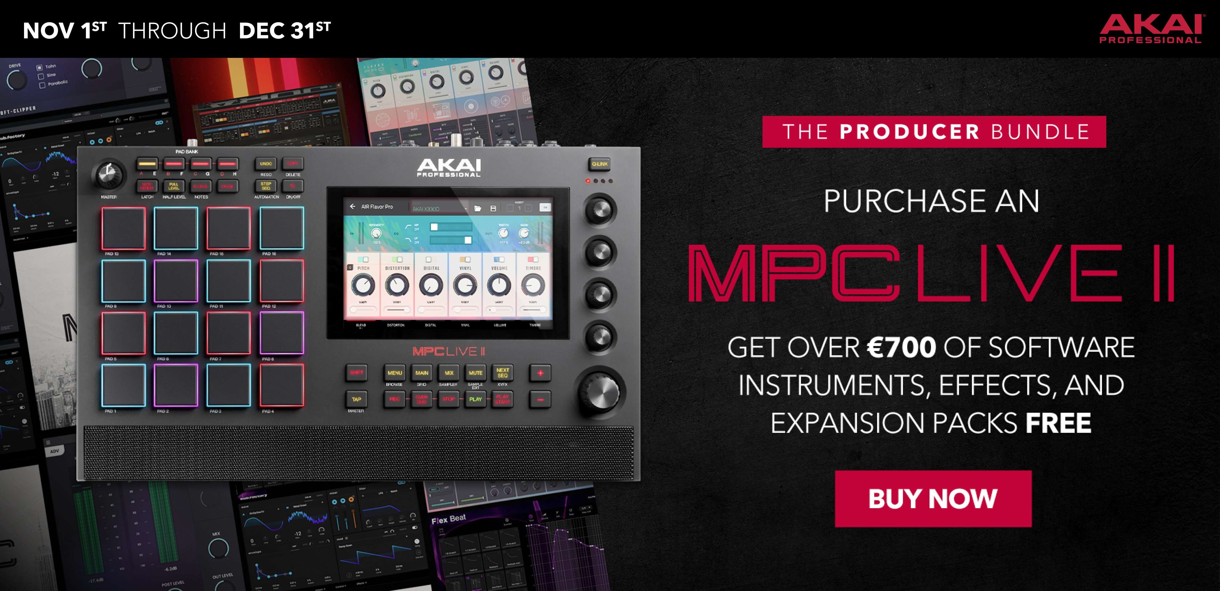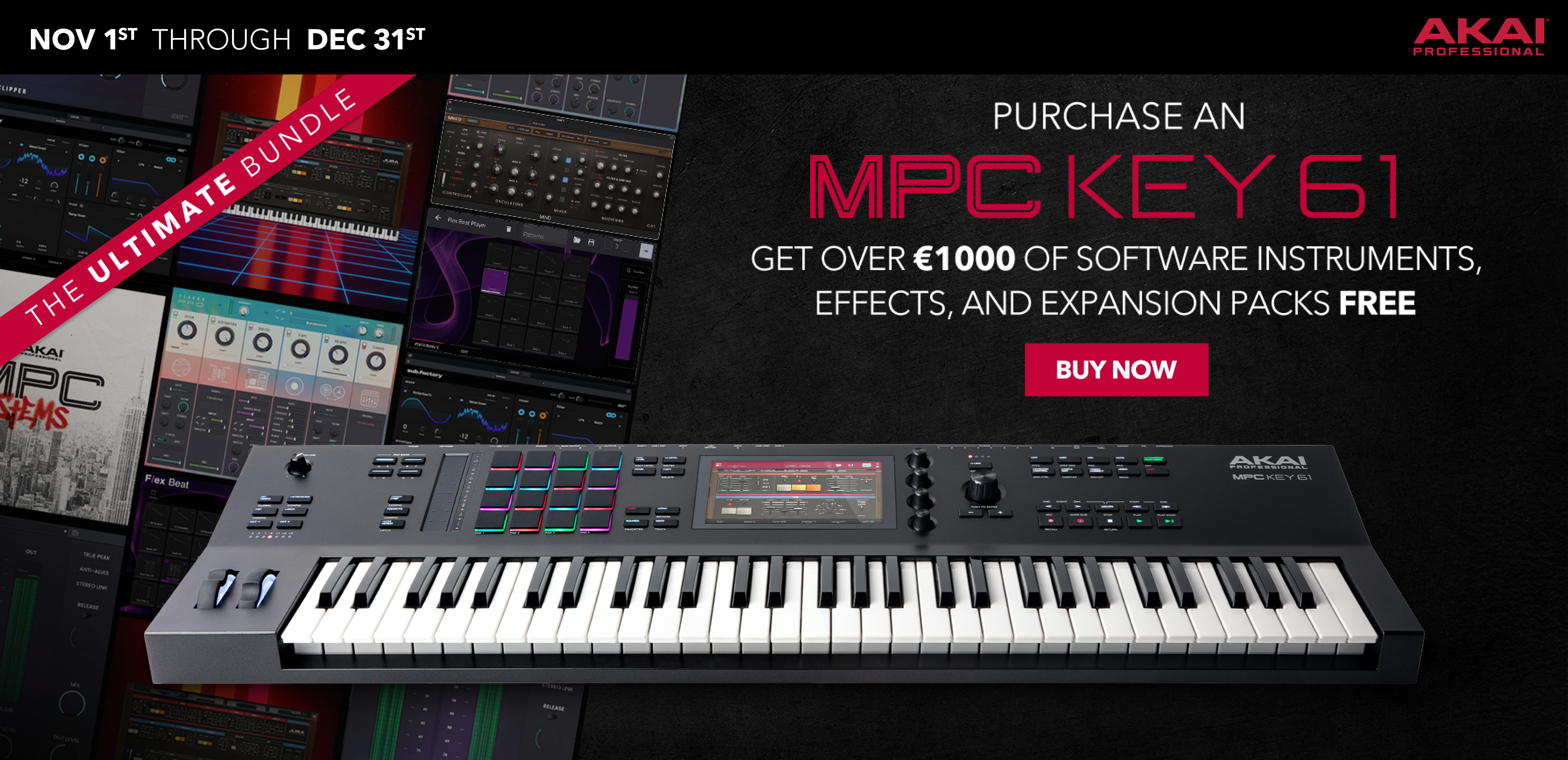 Er is goed nieuws voor diegenen die een Akai MPC Live 2 of een MPC Key 61 willen aanschaffen, want gedurende de periode 1-11-2024 tot en met 31-12-2024 krijg je een fikse softwarebundel cadeau wanneer je één van beide producten bij ons aanschaft. Lees hieronder hoe de promo werkt, welke software je krijgt en hoeveel je bespaart.