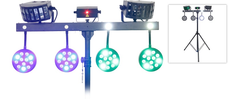 Ayra is er voor ieder feestEen feestje waarop gedanst wordt is zó leuk en sfeervol, daar wil je gewoon lichteffecten hebben. Nu is er een hoop te krijgen, en het is geen schande als je niet weet wat alles is en hoe alles werkt. Geen zorgen: de Ayra Compar Kit FX1 is betaalbaar en makkelijk in gebruik. Dit is eigenlijk gewoon de complete oplossing voor je feestje, aangezien de essentie van een lichtshow aanwezig is. Wat krijg je allemaal?Je krijgt vier kleurige LED-spots met een zwanenhalsverbinding, je kunt ze dus elk richten op vloer, muur of plafond. Je krijgt een stroboscoop voor flitsende effecten, met name als de muziek een beetje opzwepend is dan is het effect van zo'n strobe zeer goed. Ook krijg je twee Derby-effecten, deze zorgen voor een impossante waaier van lichtbundels. Er is zelfs een rood-groene laser. Dat zijn dus acht lichtbronnen, verdeeld over vier soorten! Om het af te maken zitten al deze lichtbronnen aan een T-bar, je krijgt een bijpassend statief erbij, de bijbehorende tassen, en zelfs een afstandsbediening. Kortom: wat wil je nog meer? Niks toch? Of toch wel? We kunnen nog een rookmachine adviseren, visueel erg indrukwekkend als je lichtbundels door de rook heen stralen. Bekijk de voordeelbundels onderaan op de productpagina voor een setje met een rookmachine! Gerelateerde merkenGerelateerde producten |