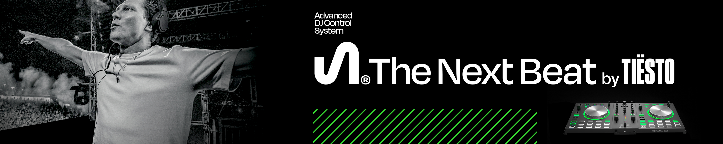 Volwaardige DJ-controller en Masterclass tutorials van Tiësto & friendsMet The Next Beat by Tiësto is er een nieuw antwoord op de vraag: "Welke DJ-controller is er voor mij geschikt?" De Next Beat is echt voor beginnende DJ's maar ook erg jonge DJ's geschikt. Kinderen vanaf 10 jaar oud kunnen nu de kneepjes van het vak leren van de 'Godfather of EDM' zelf: DJ Tiësto! Naast een volwaardige DJ-controller compleet met analoge inputs voor mobiele apparaten, Bluetooth-connectiviteit, Jogwheels met LED-ringen en Key Lock-functionaliteit krijg je toegang tot het all-in-one gebruikersplatform met tutorials van Tiësto & friends, downloads, sound packs, 30 gratis dagen toegang tot Beatport, noem het maar op. Je reis start hier met The Next Beat by Tiësto!