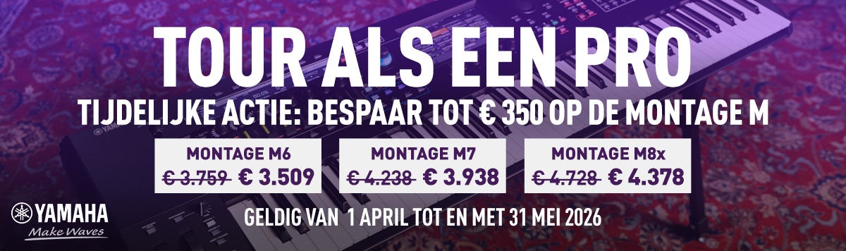 Nu de zomerfestivals en het tourseizoen dichterbij komen, is dit hét moment om je rig podiumklaar te maken. Yamaha’s Montage M-workstations zijn gemaakt voor serieuze toetsenisten en producers die premium sounds en performance power zoeken—voor repetities, live shows én studiowerk. Tijdelijke korting op Montage MVan 1 april 2026 t/m 31 mei 2026 (zolang de voorraad strekt) krijg je korting op: